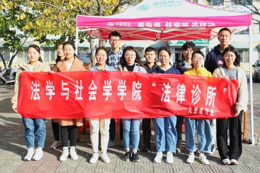 为弘扬法治精神,构建和谐校园,11月15日,williamhill威廉希尔2017级法学班在八餐小广场开始进行为期三天的法律诊所课程实践,展开法律诊所进校园活动。