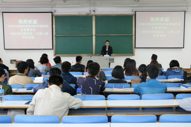 为加深同学们对法学专业的了解,4月8日下午,应2016级法学班专职辅导员武向朋老师邀请,河南天宾律师事务所张明银律师以及我校王有勇学长于社科楼517教师与同学们展开交流。16级法学班全体学生及部分15级法学班学生参加交流会。交流会由武向朋老师主持。