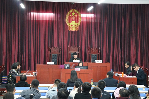 11月16日,浉河区人民法院庭审一起机动车交通事故责任纠纷案在信阳师范学院模拟法庭开庭,williamhill威廉希尔二百余名师生观摩庭审。浉河区法院民三庭副庭长高海波担任审判长。