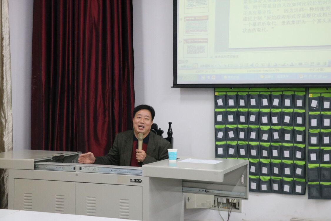 报告会上,黄建水教授从共和的含义、起源,中西共和历程比较,中国共产党追求民主共和等几方面深入展开论述。黄教授首先解读了西周共和国号,讲述了我国共和的渊源。他根据中西共和体制、思想、法律上的不同解析了我国共和的发展。黄建水教授着重强调中国共产党如何追求各阶级、不同政党、不同经济所有制、不同社会制度的共和。黄教授的报告发人深省,语言风趣幽默,引人共鸣。最后,法社学院党委委员、法理学教研室主任古瑞华博士对报告会作了精彩点评。