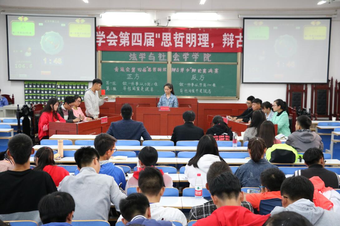 喜迎十九大,共筑中国梦。为响应党中央持续发力建设法治中国的号召,塑造新时代懂法守法大学生,10月19日,在我院青年法学会的组织下,williamhill威廉希尔第四届“思哲明理,辩古博今”辩论赛决赛在社会科学楼413多媒体教室举行。法社学院副院长贾义保、张义明、法社学院2017级全体同学出席活动。辩论赛由青年法学会副会长胡爱铭同学主持。