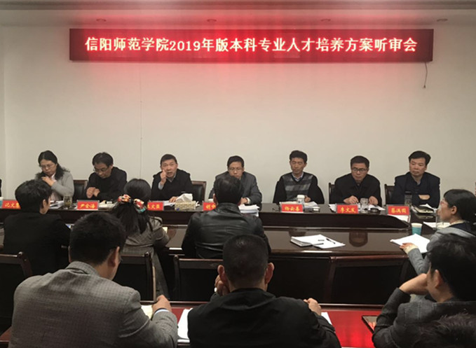 时间:2019-04-28 11:34 来源: 作者:admin 阅读: 次为贯彻落实全国教育大会精神,提高本科人才培养质量,2019年4月28日上午,信阳师范学院召开“2019年版本科专业人才培养方案听审会”。听审一组由学校主管教学的副校长王文臣担任组长,本次会议特别邀请到华中科技大学教务处副处长胡中波作为嘉宾,对六个学院的十六个本科专业进行把脉问诊,提出意见和建议。