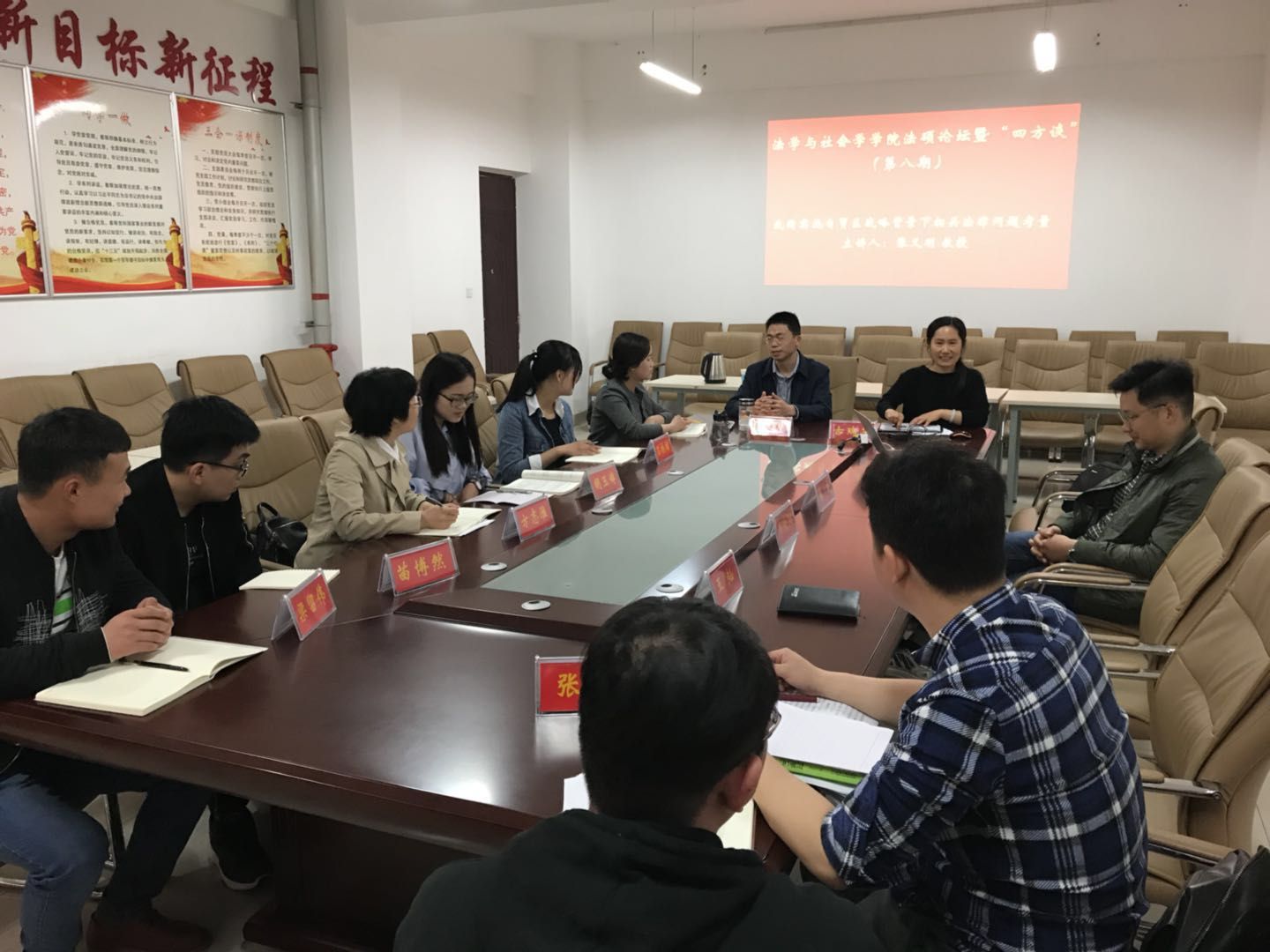 时间:2018-04-02 17:36 来源: 作者: 阅读: 次2018年3月29日上午,法社学院第八期法硕论坛暨“四方谈”系列讲座在社科楼412会议室举行。本期讲座主题为《我国实施自贸区战略背景下相关法律问题考量》,法社学院副院长、党委副书记张义明教授担任主讲人,部分硕士生导师及全体法律硕士研究生参加了本次讲座。讲座古瑞华副教授担任主持和点评人。