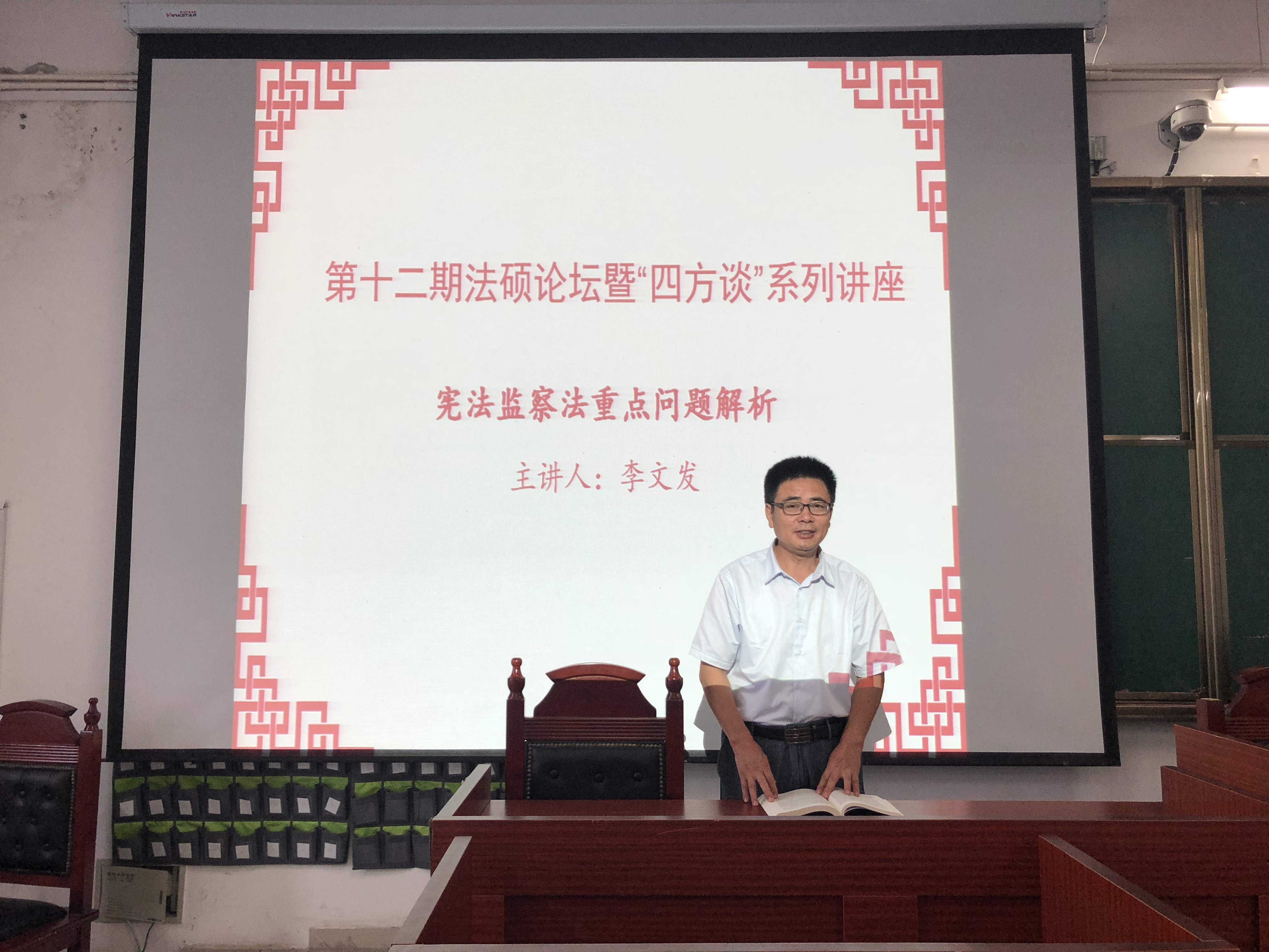 见面会后,李文发教授为全体法律硕士研究生作了题为“宪法、监察法重点问题解析”的讲座。本次讲座主要分为两个部分,第一部分是《宪法》的解析,李文发教授围绕新中国几部《宪法》及修正案、2018年《宪法》修正的背景意义以及《宪法》修正主要内容进行解读;第二部分是《监察法》的解析,李文发教授对《监察法》主要内容和焦点焦点问题进行介绍和分析。随后,司凌丽、娄匡元两位老师就主题畅谈了个人的看法。刘文君对李院长的讲座进行了全面详尽的点评,并就《宪法》及《监察法》的修改提出了自己的见解和看法。