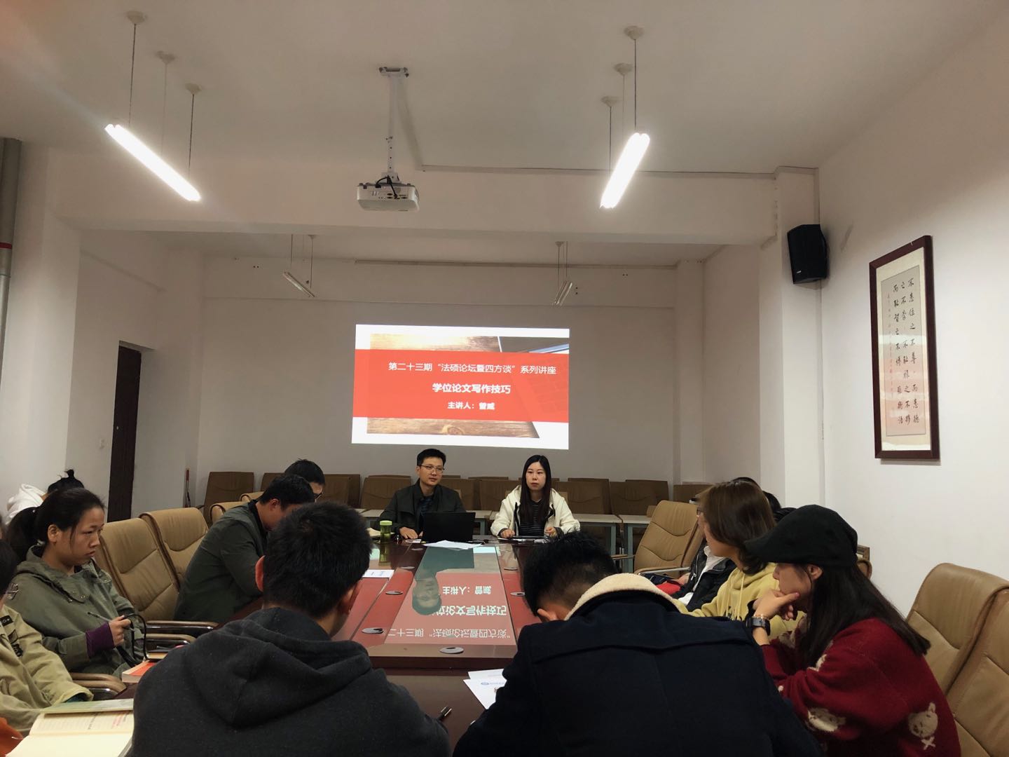 时间:2019-10-23 15:06 来源: 作者: 阅读: 次2019年10月17日上午,法社学院第二十三期法硕论坛暨“四方谈”系列讲座在社科楼412会议室举行。本期讲座主题为“学术论文写作技巧”,由法社学院法学系副主任、研究生导师曾威博士担任主讲人,研究生秘书李欣阳担任主持人,全体法律硕士研究生聆听了本次讲座。