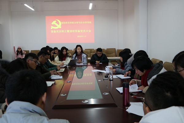 大会分为两个议程,第一议程中,讨论研究接收吕桂楠、王明晨、任家胜、姚俊珂四位同志为中共正式党员事宜,四位预备党员分别宣读了转正申请书,并由入党介绍人分别汇报了其转正申请人在预备期间的表现和对预备党员的教育和考察情况,并就是否同意该同志成为正式党员提出意见。随后,与会有表决权的正式党员进行投票表决。在第二议程预备党员接收大会中,刘佳佳等13名发展对象分别宣读了入党申请书,其介绍人也对他们提出考察和批评意见。在接受预备党员后,全体党员及预备党员面对党旗进行了入党宣誓。最后,党委副书记樊德玲告诫与会党员同学应以志存高远,时不我待的精神勇敢担当,只争朝夕勇做时代的弄潮儿,在实现中国梦的伟大实践中放飞青春梦想,在未来前进道路上初心不改,斗志不减。