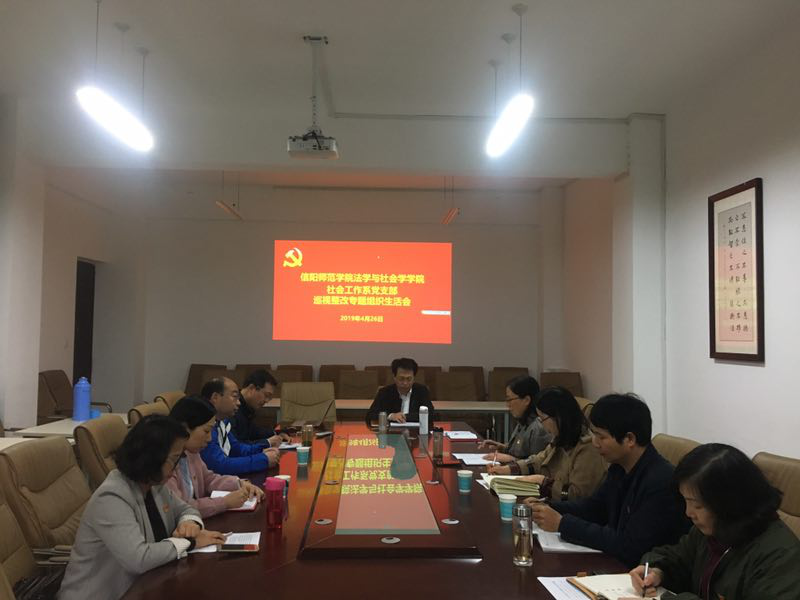 时间:2019-04-27 17:41 来源: 作者:admin 阅读: 次2019年4月26日,按照省委巡视反馈意见要求和学校巡视整改落实工作安排,法社学院社会工作系教工党支部在社科楼412会议室召开“针对省委巡视反馈问题,进行批评与自我批评”巡视整改专题组织生活会。学院党委书记王文华同志到会指导,社工系教工党支部全体党员参加会议,会议由社工系教工党支部书记侯秀丽主持。