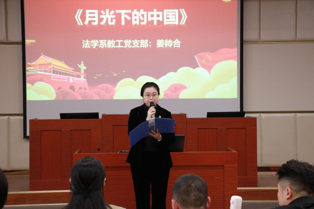 参赛教师们都经历了精细的排练和认真的准备。姜帅合带来诗朗诵《月光下的中国》,展现了月光下一个宁静、温柔、祥和、美丽的中国;祁中山分享了关于“党史学习要用好用活地方性知识”的心得,活灵活现;杨胜利带来《彭雪枫的情书》,将彭雪枫凄美、浪漫的爱情故事娓娓道来;歌曲《红旗飘飘》由刘海晓演绎,虽为清唱,歌声激情澎湃;再现了抗日战争时期血与泪交织的历史的《吴焕先的故事》则由邱海洋讲述;杜连峰以第一人称的口吻讲述了其姥姥的经历——《我的身世》,故事情真意切。最后,刘文君、梅傲寒、李雪莹带来合唱《我和我的祖国》在会议室中久久回荡。最终,《我和我的祖国》、《月光下的中国》、《吴焕先的故事》分别荣获一二三等奖。至此,比赛落下帷幕,武向朋老师为大家做点评总结,她表示在接下来的日子中,我们应更加积极学习四史,将理论与实践更好的结合起来。