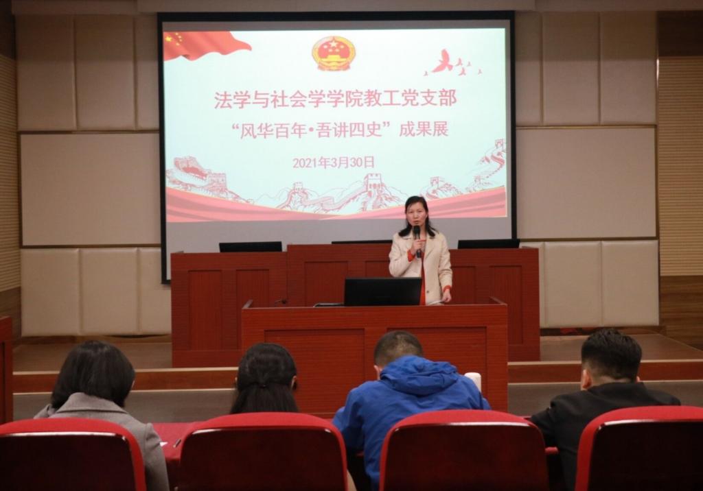 时间:2021-03-30 22:08 来源: 作者:张霖 阅读: 次3月30日下午,williamhill威廉希尔教工党支部在社科楼413会议室举办“风华百年,吾讲四史”成果展活动。法学系教工党支部书记古瑞华、社会工作系副主任杜晓、社会学系副主任侯秀丽、法制与社会管理教研室党支部书记陈杰、思想政治教育与就业指导教研室党支部书记武向朋、实践教学中心党支部书记张宇出席活动并担任评委。