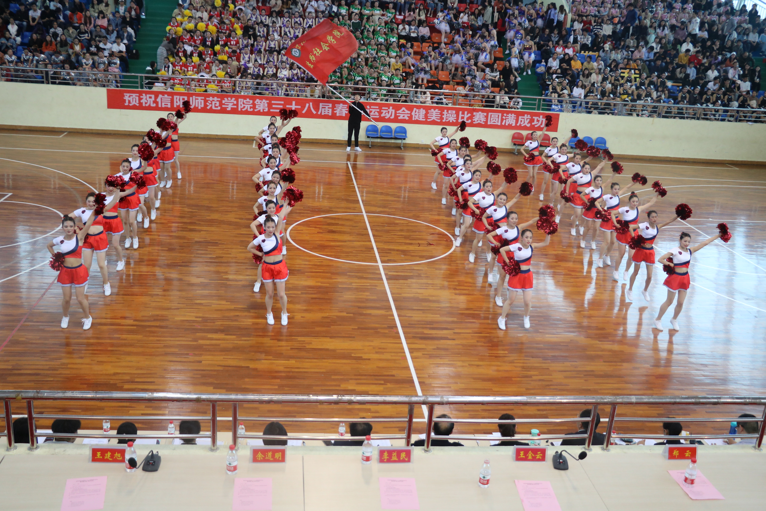 开幕式上,我院仪仗队身着统一的服装,在红旗飘扬中跟随着分列式进行曲,迈着整齐的步伐,踏着鼓点,意气风发地走向主席台,接受校领导的检阅,紧接着,我院健美操成员在千人齐跳中 伴随着活泼动感的音乐为大家带来一场视觉盛宴,整齐有力,活泼灵动。随着开幕式的结束,运动会比赛正式拉开序幕,我院运动健儿在赛场上保持镇定,拼尽全力,努力在比赛中突破自我,传承着法社人的精神。看台上,啦啦队的呐喊声击鼓声连绵不绝、振奋人心,为运动健儿加油助威。与此同时,我院学生会各部门及各班级进行了详细分工,为后勤服务工作的顺利开展提供了保障。