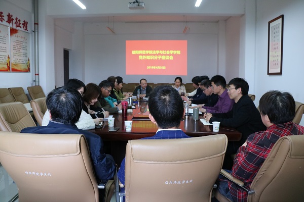 时间:2019-05-01 08:29 来源: 作者:admin 阅读: 次为了深入学习贯彻习近平总书记关于意识形态工作的系列重要论述和在全国高校思想政治工作会上的重要讲话精神,充分发挥统一战线在学校建设和发展中的重要作用,4月30日,法学与社会学院在社科楼412会议室召开了党外知识分子座谈会。学院党委委员李文发、贾义保、张义明、樊德玲、胡亚云、邱海洋、古瑞华与学院15名党外知识分子参加了本次座谈会。会议由学院党委组织委员、副书记樊徳玲主持。