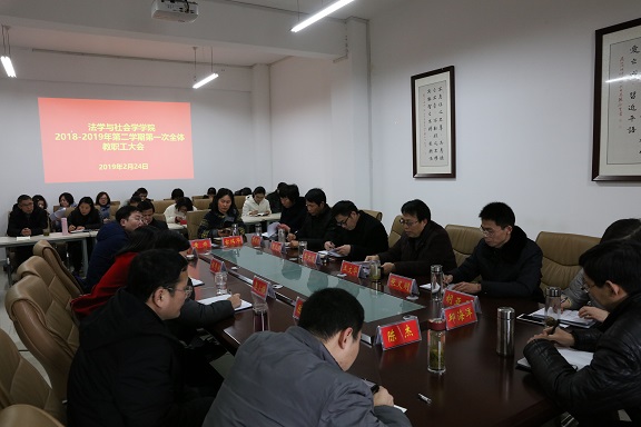 时间:2019-02-25 17:10 来源: 作者:admin 阅读: 次2月24日,我院在社科楼412室召开全体教职工大会,安排部署新学期工作。学院领导李文发、王文华、贾义保、张义明、樊德玲、胡亚云、邱海洋、古瑞华出席会议。会议由法社学院党委书记王文华主持。