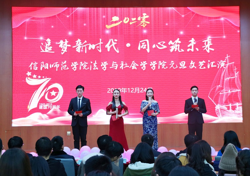 时间:2019-12-25 17:46 来源: 作者:姚欣 樊晓岩 阅读: 次12月24日晚7点,williamhill威廉希尔“追梦新时代·同心筑未来”2020年元旦文艺汇演在逸夫楼报告厅隆重举行。学院班子成员李文发、王文华、贾义保、张义明、樊德玲、邱海洋、古瑞华与500余名师生欢聚一堂、共度良宵。