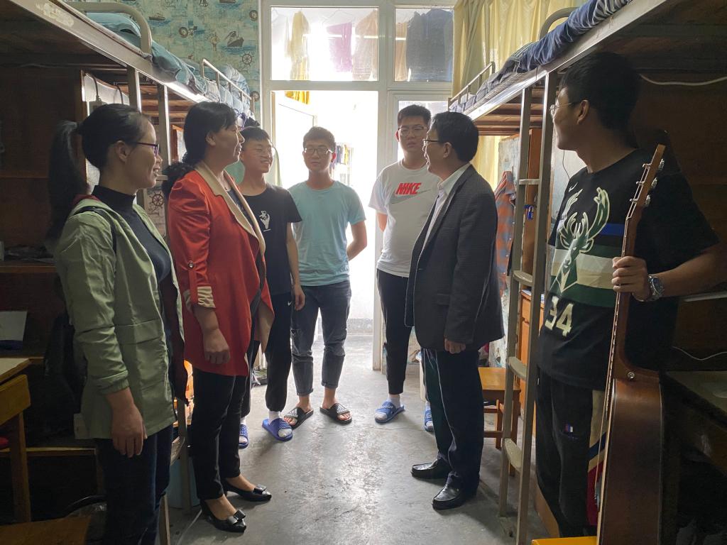 10月10日下午,我院党委书记王文华带队,走访全部新生宿舍。每到一处,他都要逐一问下同学们的姓名、来学校报到乘坐的交通工具、家庭人员组成等,暖心的话语让气氛温馨而亲切。王文华特别叮嘱随行的辅导员、班主任要强化新生安全教育,帮助新同学尽快适应大学生活。
