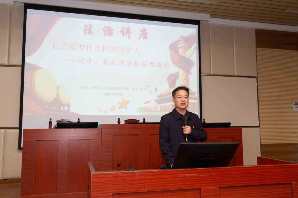 祝杰以《社会需要什么样的法律人——以中、基层司法机关为视角》为题,从时代背景、浉河区法院法官看新时代法律人的精神、法律实务部门对法科学生能力的具体要求和跳出法律看法律四个方面,选取近年来的经典案例做了一场精彩的法治讲座。讲座中,祝杰还就相关的法律专业知识与研究生进行了交流。听了专题报告,同学们纷纷表示要更加珍惜校园学习时光,坚定做一个合格法律人的信念。