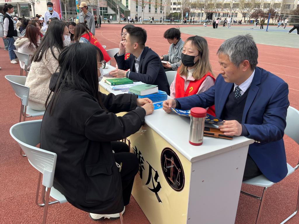 此外,实践教学中心还积极开展“暖春三月学雷锋,我为师生办实事”志愿服务活动,面向全校师生开展法治宣传和义务法律咨询服务活动,为每一位前来咨询的师生提供专业、周到、热情的法律咨询服务。