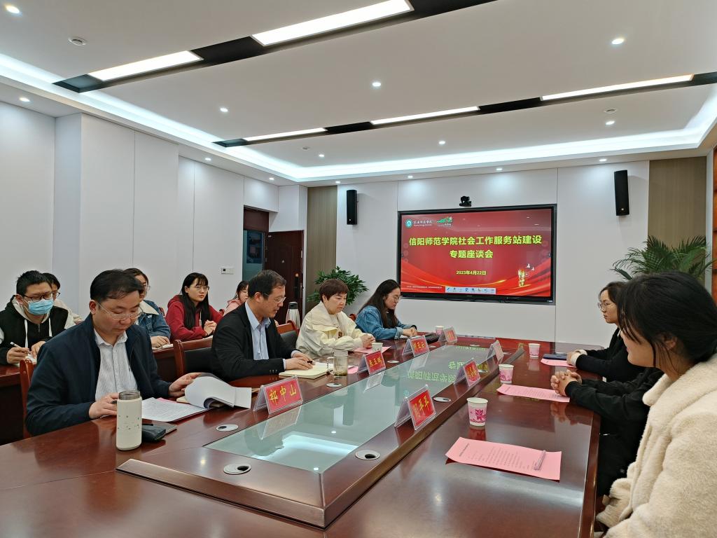 时间:2023-04-24 09:39 来源: 作者: 阅读: 次4月22日,信阳师范学院社会工作服务站建设专题座谈会在社科楼412会议室召开。郑州市级社会工作督导刘备备、闫平平、李艳红,williamhill威廉希尔副院长张玉鹏,社会工作系胡亚云教授等出席座谈会,社会工作专业本科生代表40余人参加会议。活动由学院党委委员、社会工作系主任祁中山主持。