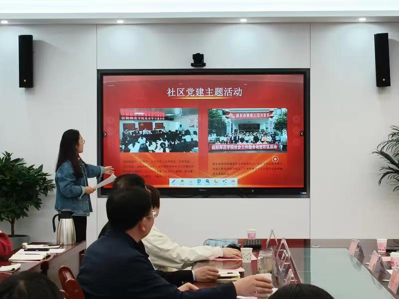 祁中山介绍了我院社会工作服务站成立的政策背景、现实条件和目标任务。他说,自服务站成立以来,利用社会工作及相关专业人才资源,面向学校师生、周边社区开展了一系列社会服务,但在服务对象聚焦、服务半径延展、服务方法掌控、服务效果提升上还面临着诸多“成长的烦恼”,希望社会工作界同仁经常来校调研指导,帮忙审视问题,提升发展质量。社会工作站工作人员付梦兰介绍了社工站近三年来在社区党建、项目设计、主题活动、基地建设等方面的工作情况。