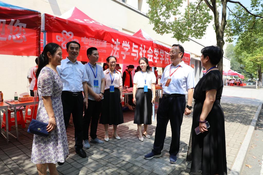 王文鹏书记在学院迎新服务点详细了解学院迎新工作举措和学生报到进展等情况,他对学院迎新工作表示肯定,要求学院强化服务,细致周到做好新生工作。他还鼓励新同学们要更快地适应、融入大学校园,开启人生新航程。
