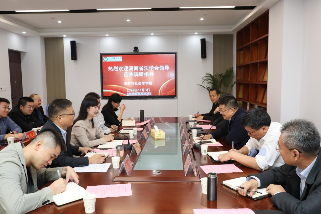 王娟对王子勇一行表示热烈欢迎,对省法学会长期以来的关心支持表示感谢,介绍了学校办学历史、学科特色以及法学学科发展情况。王娟指出,作为河南省特色骨干大学建设高校,学校高度重视法学工作,在人才队伍、科研平台和服务地方经济社会发展等方面取得了丰硕成果。尚红林就学院基本情况以及法学专业的教学、科研、人才培养和服务地方法治建设等工作作了汇报。