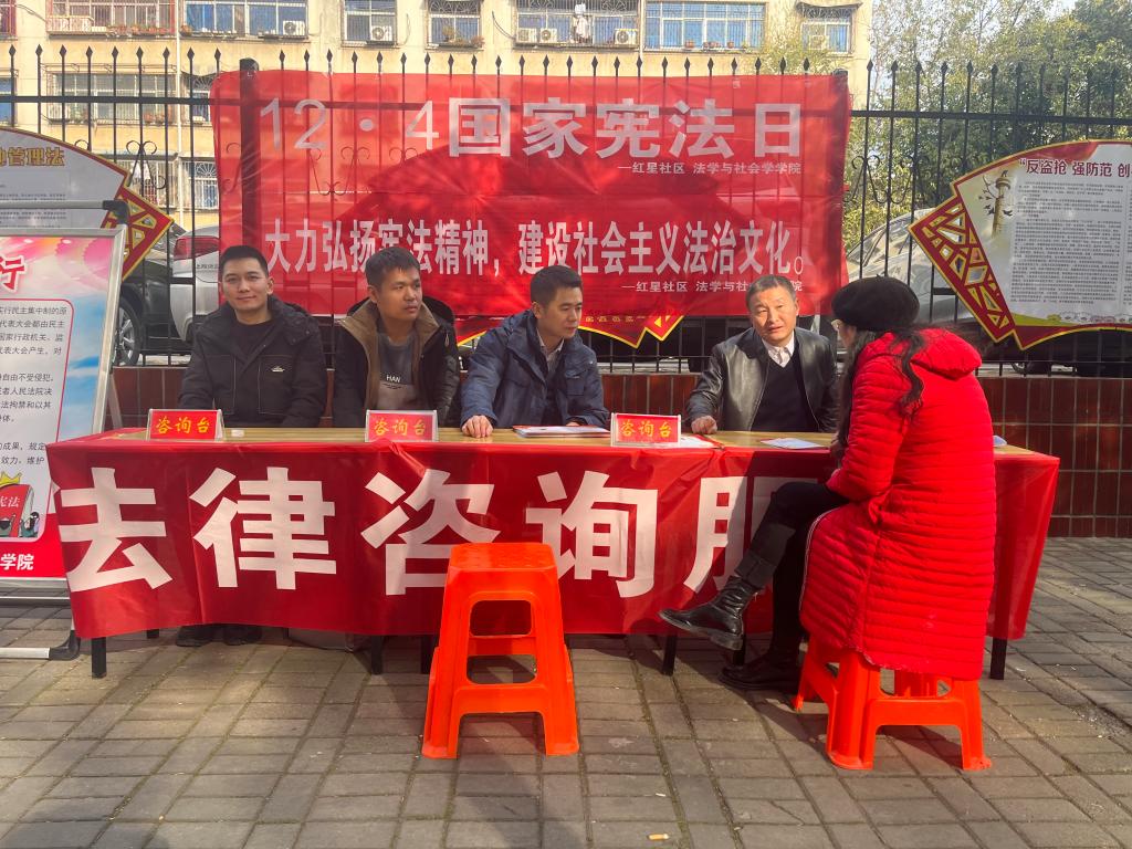 宣传普及宪法,弘扬法治精神。12月1日至4日,青年法学会志愿者通过发放宣传单的形式走进校园积极开展宪法宣传活动,传播宪法知识;4日清晨,学院组织开展“宪法晨读”活动,学习宪法的性质和发展历史,感受宪法的权威和尊严,让宪法深入人心;4日上午,学院在红星社区开展法律咨询服务,让同学们将自己的法律知识付诸实践,巩固和充实了自己的法律知识。