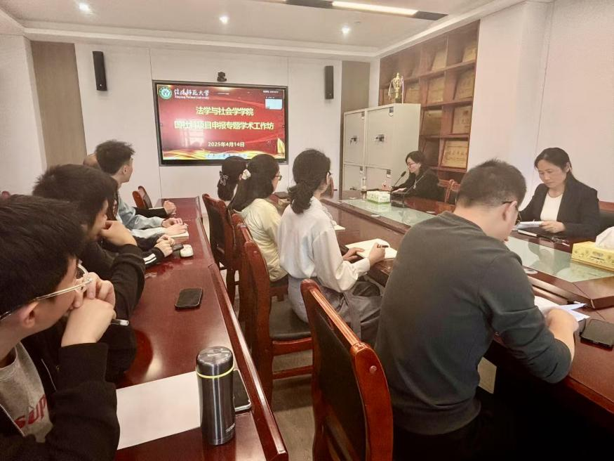 时间:2025-04-15 11:12 来源: 作者: 阅读: 次为进一步提升高层次科研项目申报质量,扎实推进学院科研工作高质量发展,学院于4月14日在社科楼412会议室举办了国社科(法学类)申报专题学术工作坊。会议邀请中央民族大学法学院李梁教授担任主讲嘉宾,法学专业科研骨干教师及法律专业研究生参与研讨。会议由武向朋副院长主持。