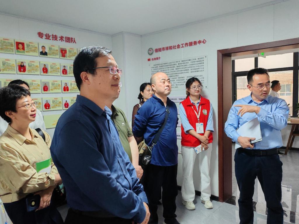 座谈会后,张玉鹏一行参观了信阳市祥和社会工作服务中心。机构负责人详细介绍了机构的基本情况、服务范围、主要成就等。双方一致同意进一步探索校社联动机制,共同培养社会工作专业人才,为乡村振兴战略实施贡献智慧和力量。