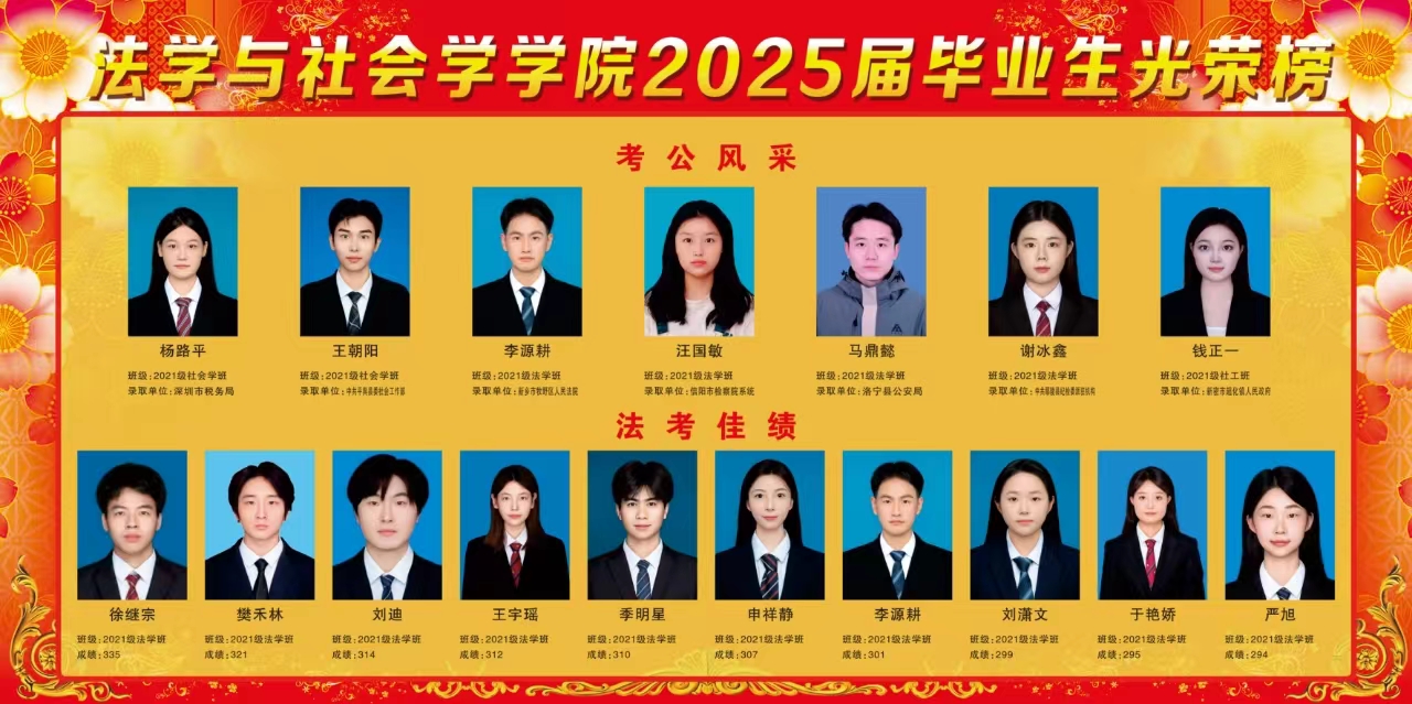 时间:2025-05-22 18:29 来源: 作者: 阅读: 次“路虽远,行则将至;事虽难,做则必成”。法学与社学学院2025届毕业生在考研、考公与法考中均取得了令人瞩目的成绩。学院2025届共有159名本科毕业生,其中,48名同学被录取为硕士研究生,考研录取率为30.2%;公务员考试佳绩频传,有7名同学在国考和省考中被录取;有10名同学在国家法律职业资格考试中一次性过关,充分体现了学院教育教学改革和人才培养的显著成效。