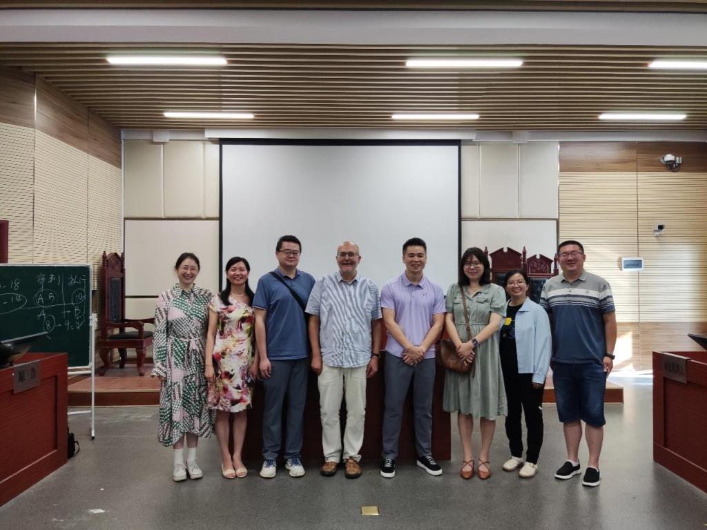 AGUSTÍN ALBESA CARTAGENA教授和与会教师就西班牙法律体系从植根自然法向实证法的演变历程、中国法律的发展路径、对比分析中国与西班牙在司法程序运作机制上的异同等展开深入交流,并就中国、西班牙法律教育模式、法学研究方法以及如何有效衔接法学理论与司法实践等问题展开研讨。研讨结束后,AGUSTÍN ALBESA CARTAGENA教授参观了该院模拟法庭,双方合影留念。