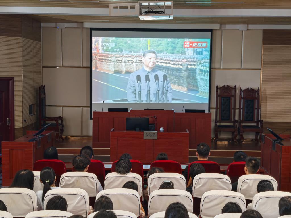 学院师生集中观看纪念中国人民抗日战争暨世界反法西斯战争胜利80周年大会