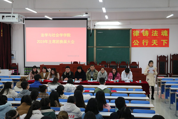 阳和启蛰,品物皆春。3月5日下午,williamhill威廉希尔在社科楼413会议室成功举办2019年学生会主席团换届大会。参加此次会议的领导老师有法社学院党委副书记樊德玲,正科级辅导员郭瑞,团委书记杨胜利,专职辅导员王艳丽,团委主席团成员以及学生会全体干部,会议由徐晓婉主持。