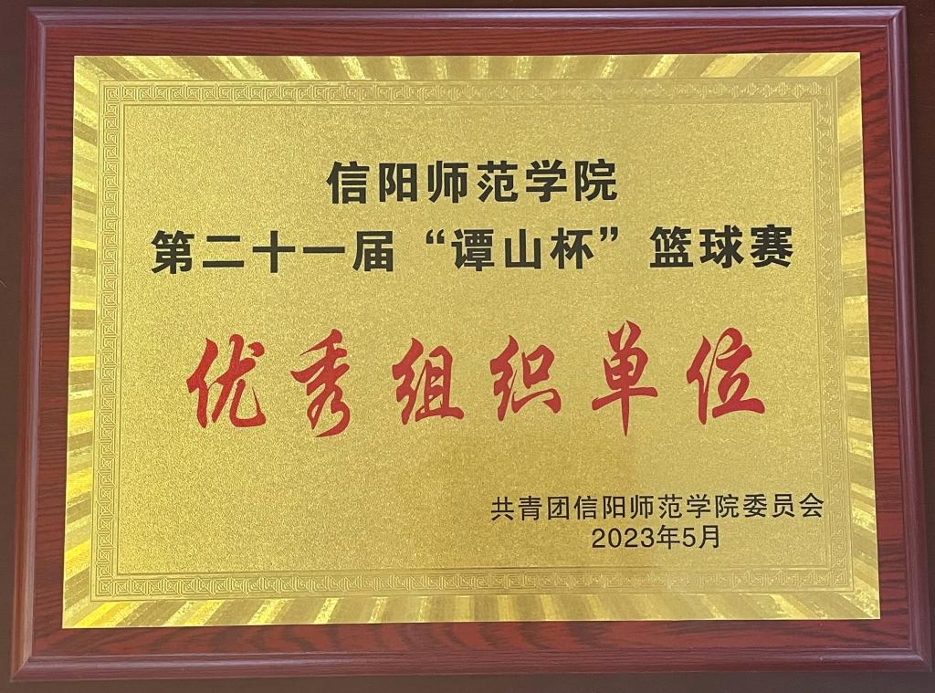 5月9日,信阳师范学院第二十一届“谭山杯”篮球赛在体育馆圆满落幕,法学与社会学学院荣获“优秀组织单位”称号。
