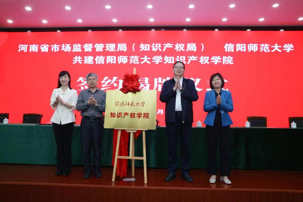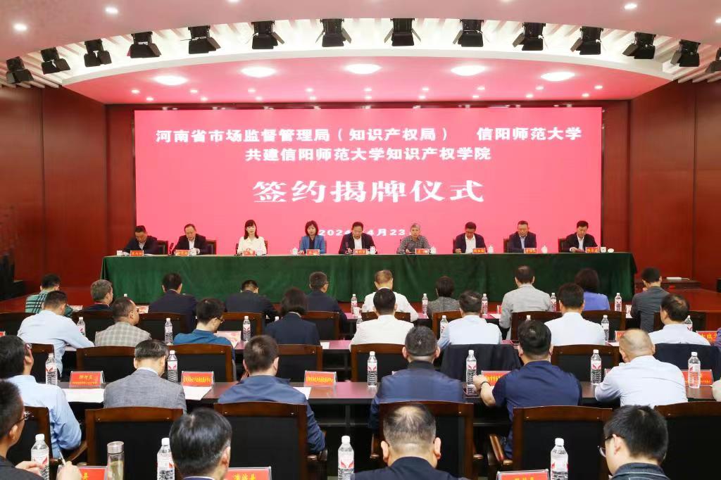 4月23日,河南省市场监督管理局(知识产权局)与William威廉共建知识产权学院签约揭牌仪式暨“新时代知识产权学院建设与知识产权人才培养”座谈会在我校举行。河南省市场监督管理局党组成员、省知识产权局局长刘怀章,河南省知识产权维权保护中心副主任闻相俊,信阳市人民政府副市长郑云,校长李俊,副校长王娟、井强山、涂友超等出席仪式。省内7家高校知识产权学院、信阳市县两级市场监管系统代表,我校相关职能部门、williamhill威廉希尔师生代表120余人参加活动。王娟主持仪式。