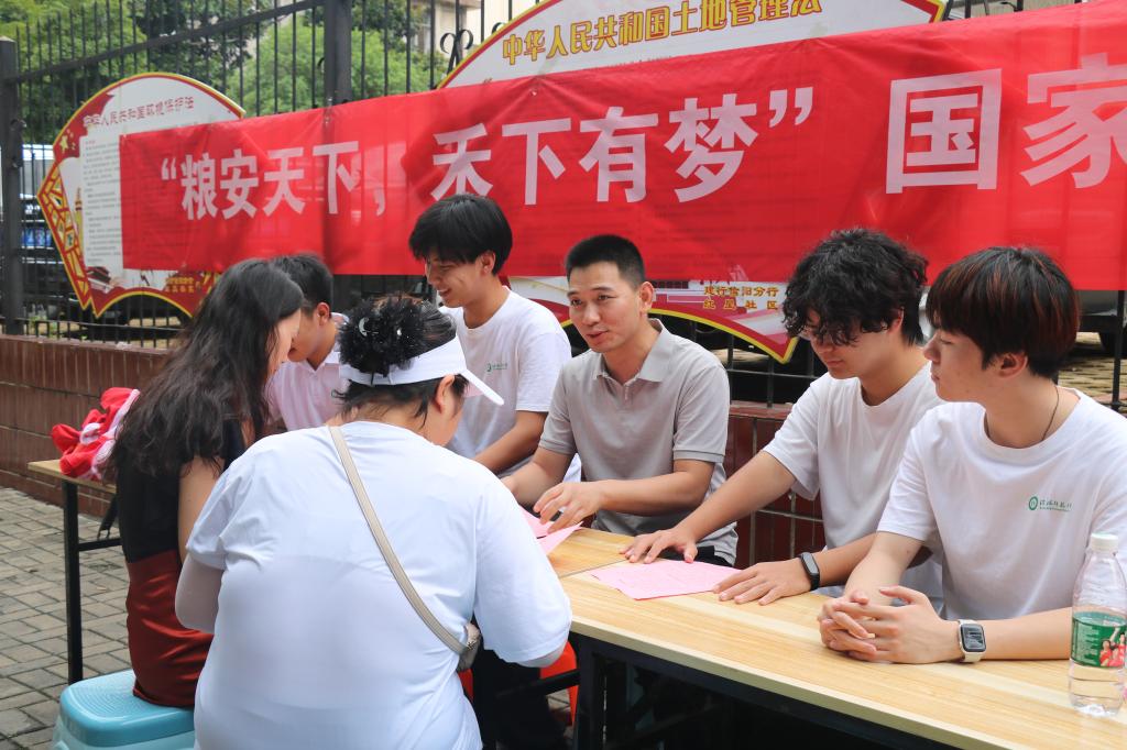 为确保普法工作的实效性与广泛性,团队成员在社区及其周边分发国家粮食安全知识宣传页,同时安排有面对面科普宣传点,为群众详细解说粮食安全相关的法律法规知识,居民们纷纷驻足,就自己关心的粮食安全问题向团队成员提问。宣讲人员耐心解答,用通俗易懂的语言解释了粮食生产、储备、流通等环节中的法律规定,让居民们明白保障粮食安全不仅是国家的责任,也是每个人应尽的义务,弘扬节约粮食、反对浪费的传统美德。