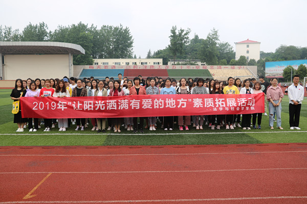 五月是充满激情、朝气蓬勃的五月,也是信阳师范学院极其富有特色的心理健康宣传月。为了提高大学生心理健康素质,促进我院青年学子的全面发展,5月25日上午,williamhill威廉希尔在西操场举行了“让阳光洒满有爱的地方”心理健康户外素质拓展活动。我院党委副书记樊德玲、团委负责老师以及2017级、2018级全体同学参加了此次活动。