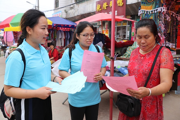 为扩大“禁毒防艾”宣传工作的宣传力度,提高周边群众的“禁毒防艾”意识,7月11日上午,信阳师范学院williamhill威廉希尔暑假三下乡实践团在我院党委副书记樊德玲、团委书记袁艳红带领下,前往信阳市罗山县东铺镇进行“禁毒防艾”的宣传工作。