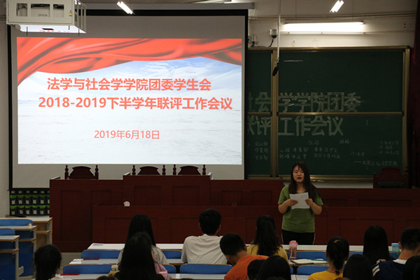 6月18日下午,williamhill威廉希尔于社科楼413教室举办2018-2019下半学年团委学生会联评大会。williamhill威廉希尔党委副书记樊德玲,团委书记袁艳红和团委老师杨胜利受邀出席大会。大会主要是对本学期的团委学生会工作进行的总结汇报。