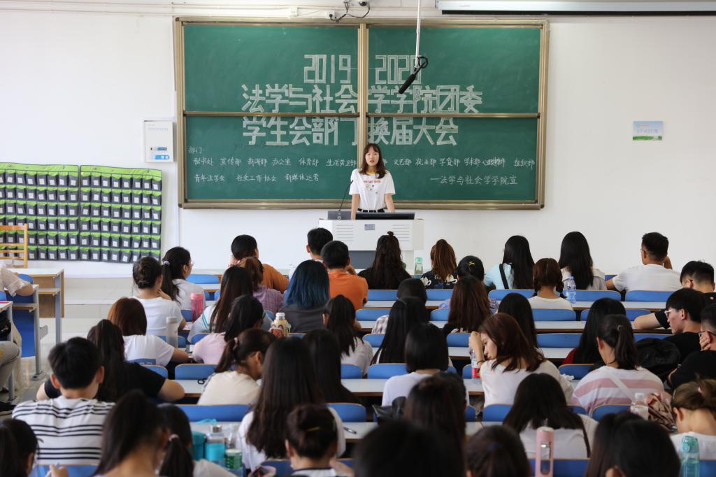 本次换届选举大会秉持着“公平、公正、公开”的原则,竞聘步骤分为个人演讲、现场答辩、民主投票、现场计票、公开结果五部分依次进行。竞选现场,团委学生会主席李梦杰发表讲话,她对上一届学生会成员在学生工作作出的努力与贡献表示感谢,同时也希望新一届团委学生会干部能够继续传承我院优良传统,发扬法社精神,共同建设和促进我院学生工作的进一步开展。团委副书记陈晨感谢学生会成员对学生会的付出,期待与法社学院学子更高处相见。竞选同学逐一上台,沉重冷静,阐述自己竞选的优势。参与竞选的同学们上台发表陈述并接受提问。整个竞选过程中,同学们不慌不忙,镇定自若的回答问题,表达了他们对学生会的热爱以及渴望留下的坚定信念,话语中无不流露出他们对本部的热爱和对未来部门发展的期望。