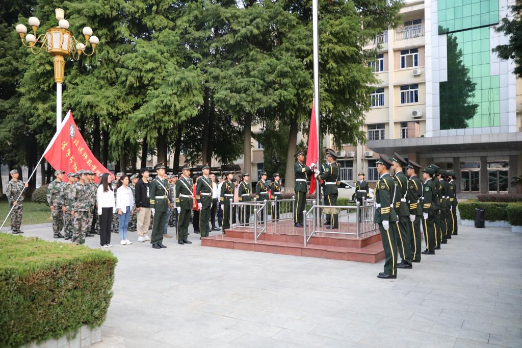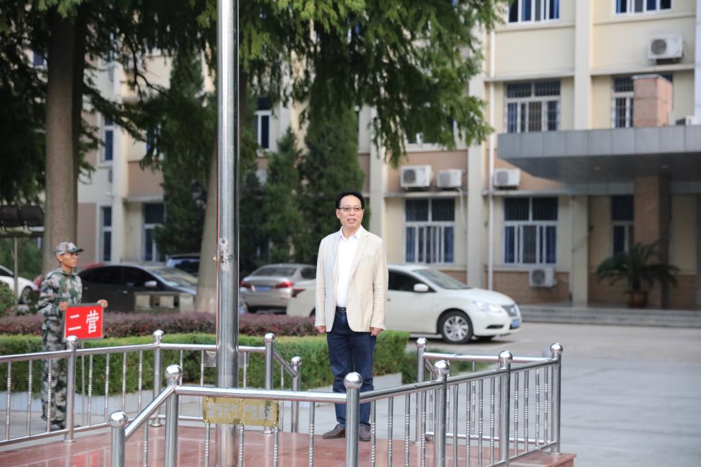 在全体师生的注目礼下,英姿飒爽的国旗护卫队队员们护送鲜艳的五星红旗进场,行礼完毕, 五星红旗冉冉升起,迎风飘扬。在场的每一个人向国旗行注目礼,深怀对祖国无限的热爱和崇高的敬意。升旗完毕,王文华发表讲话,他与新生一起回顾了近几十年祖国所取得的伟大成就以及学校近几年来跨越式发展取得的巨大成果。他指出, 作为当代大学生有责任、有义务 投身捍卫国家利益和社会主义建设的事业,勤奋学习、理性爱国,为建设中国特色社会主义、实现中华民族伟大复兴而努力奋斗!陈晨代表主席团成员向2019级新生倡议,以梦为马,不负韶华,将爱国牢记心中,用奋斗书写人生,努力成长为更好的社会主义接班人。2019级新生代表王淑慧在国旗下表明决心,在大学四年坚持践行“同心同德,共建共享,和谐法社,出彩你我”的院系要求,坚持“厚德崇实,善学敏行”的校训,为实现人生理想刻苦努力。
