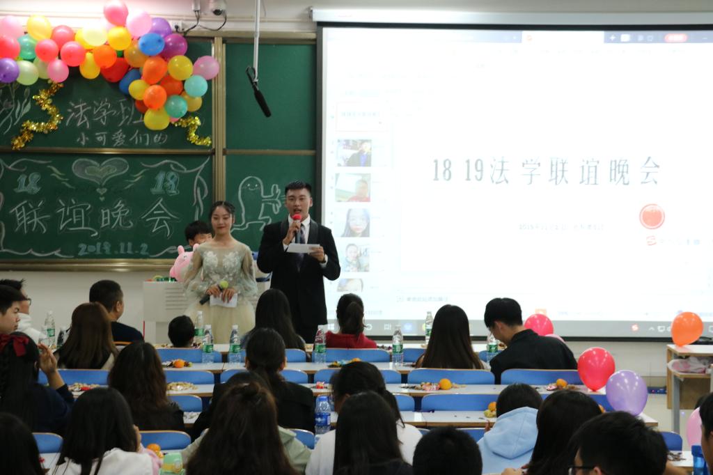 11月2日晚,williamhill威廉希尔2018级和2019级法学班于社科楼517举办联谊活动。2019级辅导员郭瑞,学生会主席团部分成员,19级法学班助理班主任白明,学生会各部门负责人出席联谊会,18及19级法学班全体同学参加联谊会。本次联谊会由2019级法学班刘之涵、赵成龙主持。