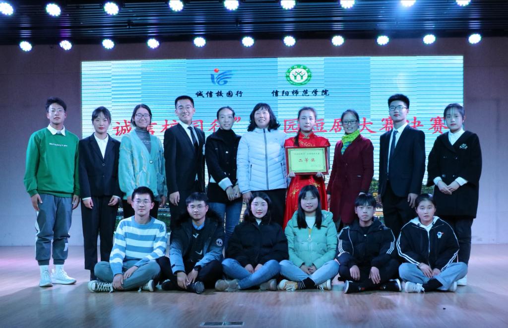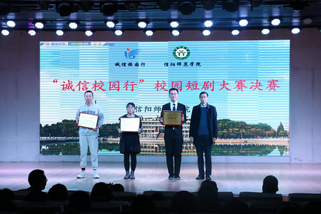 12月12日,信阳师范学院“诚信校园行”校园短剧大赛决赛在理科楼报告厅举行。我校党委副书记郜火星、学生处处长岳宗德、学生处副处长陈铭、赵晨,各学院的党委副书记出席了本次活动。williamhill威廉希尔的校园短剧《爱之无声,信以当行》荣获二等奖,团委老师王艳丽获得最佳指导老师奖。