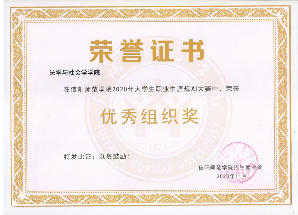 法社学院马梦依同学在《信阳师范学院2020年“粉笔杯”大学生职业生涯规划大赛》中获得三等奖