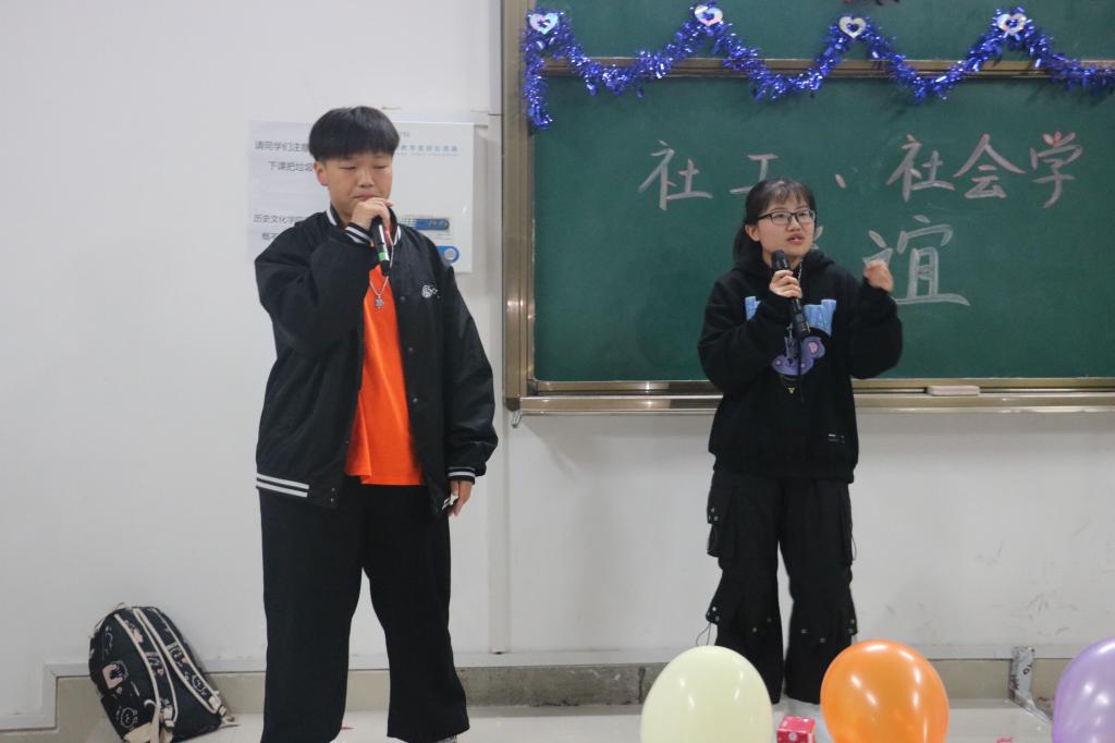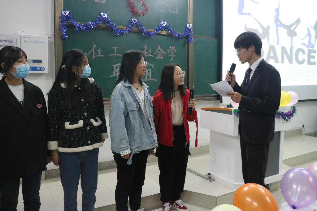 为了丰富同学们的校园文化生活,加强彼此间情谊。11月8日晚,williamhill威廉希尔2019级、2020级社会学班与社会工作班联谊晚会在社科楼212教室顺利举办。学生会主席团成员、学生会成员应邀观看晚会。大一大二全体社会学班、社会工作班同学参与晚会。