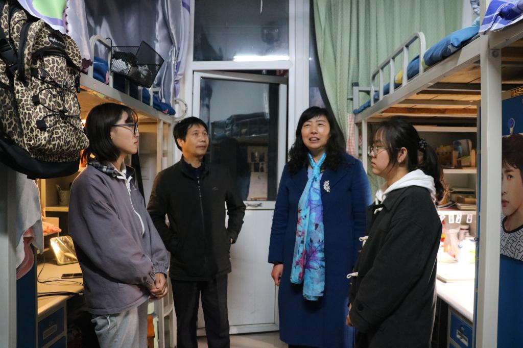 本次行动重点检查寝室内是否存放违章电器、物品摆放是否整齐、是否有异味以及垃圾是否及时处理等情况。通过此次检查,检察人员发现大部分学生寝室总体情况较好,床铺和生活用品摆放整齐,同学们都严守校规校纪没有使用违章电器。所有宿舍也均未存放违规电器和易燃易爆物品,各位校领导表示对此次检查的结果十分满意。樊书记表示:“为学生提供安全卫生的生活住宿环境,是学院的职责所在。”在检查过程中,樊书记等人与宿管人员进行交流,深入了解宿舍情况。同时各位校领导也与在场学生进行面对面交流,提出了整改意见,提醒学生要养成良好的学习生活习惯,注意宿舍用电等各方面的安全,嘱咐学生们和谐相处,共同打造良好的学习生活环境。