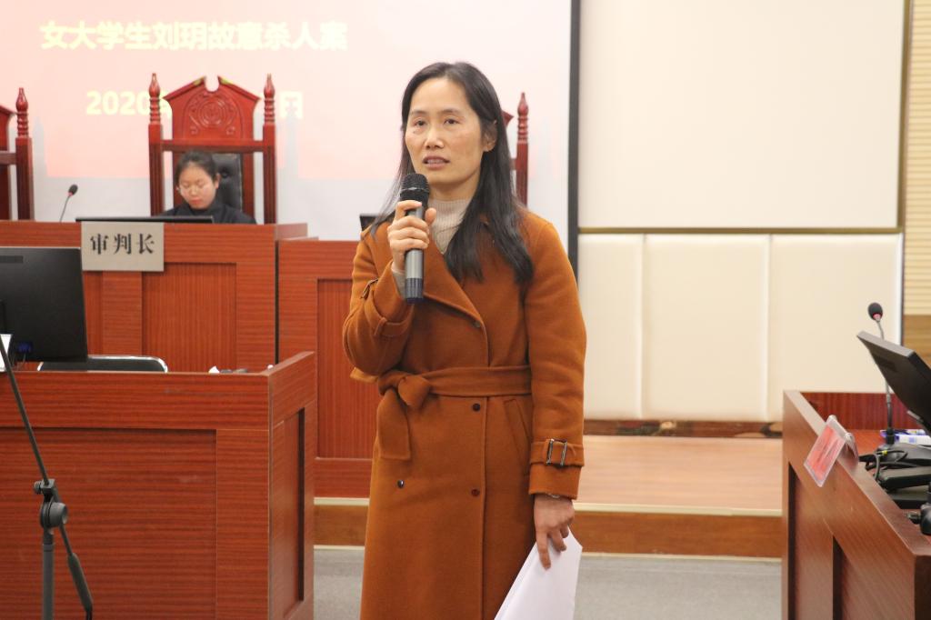 本次模拟法庭所审理的案件为《女大学生刘玥故意杀人案》。模拟法庭庭审现场气氛庄严肃穆,同学们惟妙惟肖地表演展示了法律工作人员的认真、严谨、一丝不苟的法律工作态度以及公平、公正的法律工作精神,营造出了法庭严肃、庄重的氛围。庭审在书记员宣读法庭纪律中拉开序幕。随后,审判长在全体人员的注视下严肃入场,宣布开庭。法庭调查阶段,由控诉双方对案件进行陈述,并提交原告方的证据。在辩论环节,当事人围绕一段段证据材料展开激烈的辩驳,大家思维敏捷,以犀利的言辞针对对方的漏洞出有力的反击,使得庭审辩论进入一次又一次的高潮。台上的同学们唇枪舌战,台下的同学们全神贯注。张宇和古瑞华先后为本次模拟法庭做综合点评指导。张宇从专业角度指出了本次模拟法庭的一些瑕疵和疏漏,也对学生独立完成本次活动表示肯定和赞赏。瑞华讲到脚本的几次修改对学生有很大的挑战,但同学们表现很出色,希望同学们成为真正的法律工作者。