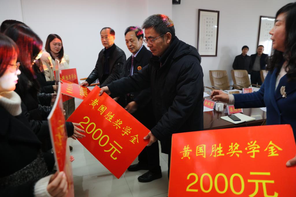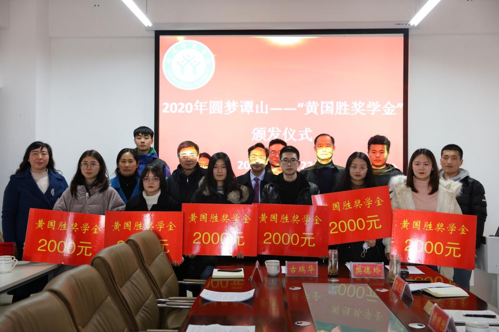 12月22日下午,2020年圆梦谭山——“黄国胜奖学金”颁发仪式在信阳师范学院williamhill威廉希尔社科楼412会议室举行。河南省黄国胜律师事务所主任黄国胜、信阳师范学院教育发展基金会理事长耿劲松和基金管理科科长杨阳、williamhill威廉希尔院长李文发、副院长贾义保、党委副书记樊德玲、党委委员古瑞华、团委书记袁艳红和全体获奖学生参加仪式。仪式由樊德玲主持。