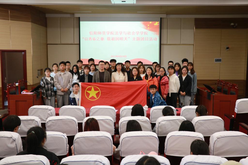 4月28日上午,williamhill威廉希尔社科楼413教室举行了“以青春之躯 载祖国明天”主题团日活动。信阳师范学院校团委组织部部长雷玲老师,williamhill威廉希尔党委副书记樊德玲及学院团委老师、学生会主要学生干部2020级法学班参加了此次主题团日活动。本次活动主持人2020级社会学班申旭阳。