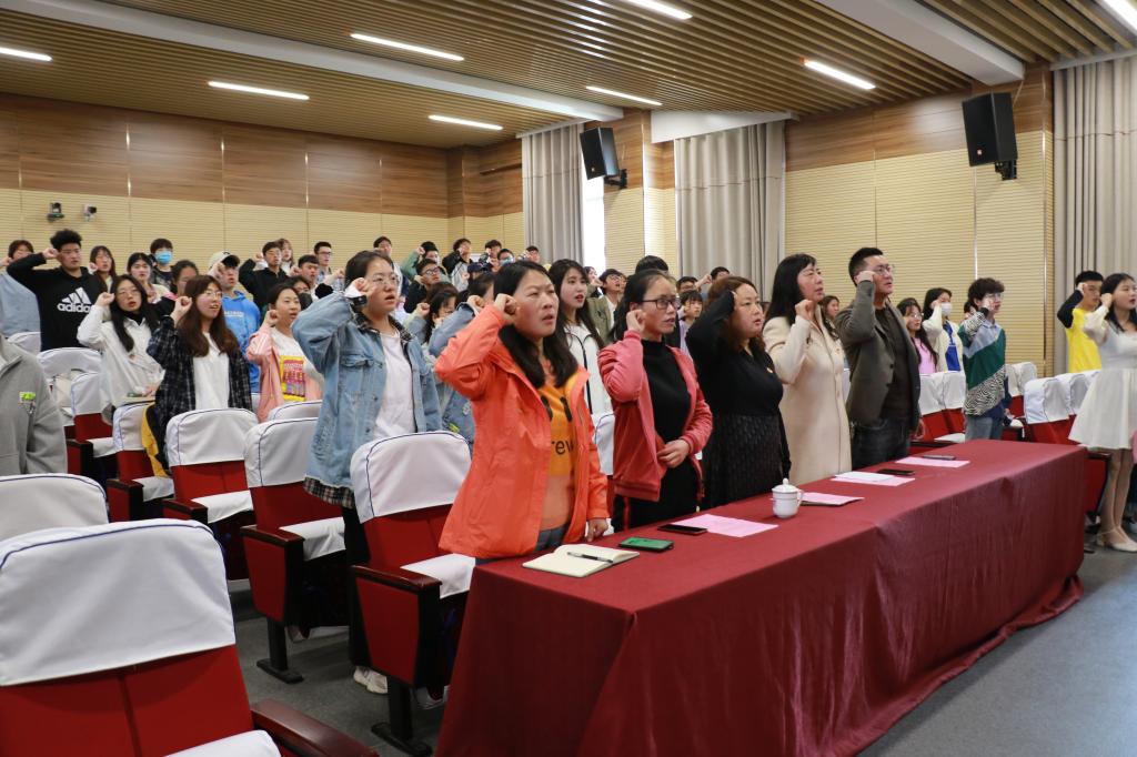 活动开始,雷玲发表讲话,她讲到以“爱国、进步、民主、科学”为核心的五四精神一直激励着中国青年去争取实现祖国繁荣富强、民族伟大复兴的目标。作为当代青年团员的我们应当秉承民族精神,高举“五四”火炬,肩负时代责任,让我们用知识加汗水,以满腔热情,去开拓、去创造、去拥抱新希望,以高度的政治责任感和强烈的使命担当,用实际行动向中国共产党成立100周年献礼。接着樊德玲发表讲话,她说到五四精神指引着一批敢吃苦,敢攻关的青年,在实现人生价值的时候也为国家打开一片新的天地。我们要争做新时代有志青年、有才青年、有为青年、有德青年随后全体在场师生通过视频短片回顾五四运动,视频短片结束后,全体同学起立,重温入团誓词。闻亮、李浩然、申旭阳、周波四位同学带来大家朗诵《少年中国说》,朗诵情绪高昂,振奋精神,歌颂了少年勇于改革创新的精神。本次团日活动在2020法学班带来的歌曲《红旗飘飘》中圆满结束。