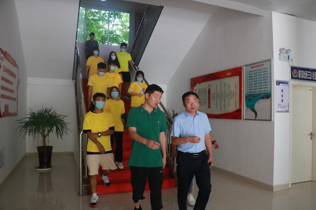 进入社区,进行调查的成员立刻采取了相关行动,通过对社区内居民的访问及其他相关方式对社区内关于诈骗与儿童安全教育的有关情况进行了了解,大致了解了有关事件的发生情况和相关宣传及知识普及情况。随后,祁中山、杨胜利与实践团成员在社区党委副书记、居委会副主任郭威的带领下一起参观了社区内部以及社区居委会,对社区居民的相关情况和社区的发展以及社区在宣传防诈骗安全知识以及儿童暑期安全教育方面的情况进行了更加具体的了解,确定了相关宣传的方式及如何展开等问题。在与社区居民的谈话中,实践团了解到三五八社区的老人们多为老军工,是三线精神的当代楷模。信阳虽然不是三线建设的主战场,但三五八社区的军工子弟非常注重对三线精神的保护。