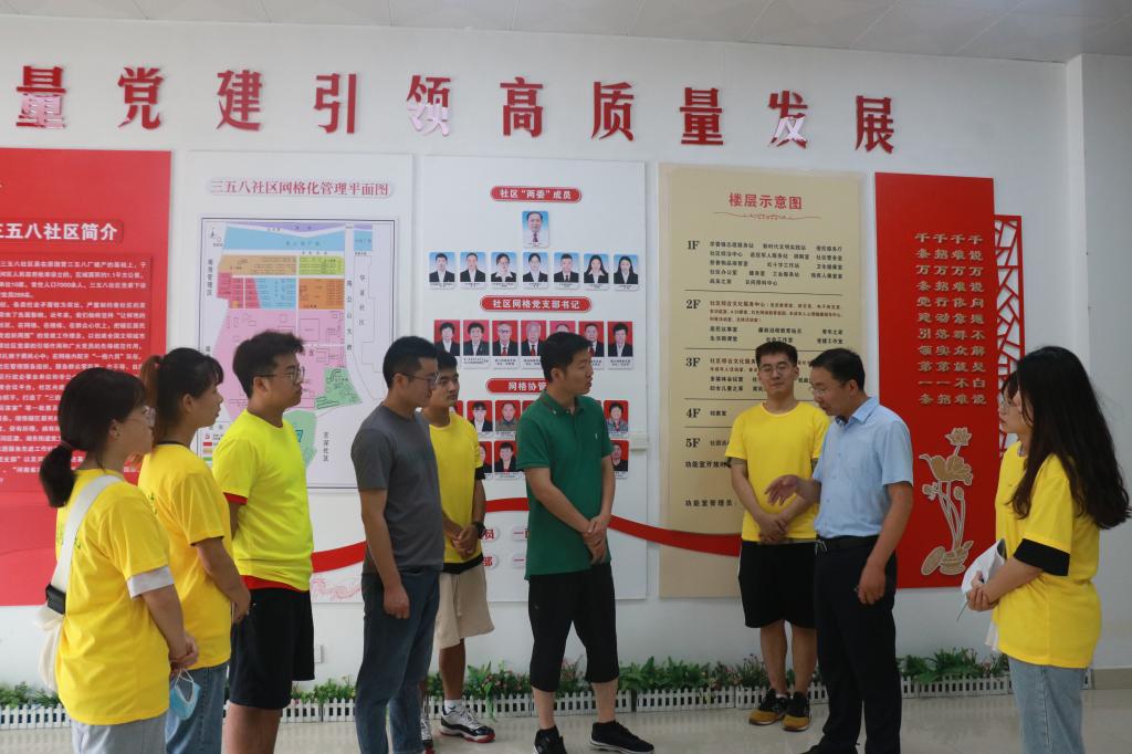 7月3日上午,williamhill威廉希尔在三五八社区展开“三下乡”活动前期调查,williamhill威廉希尔社会工作系主任祁中山,团委老师杨胜利带领暑期“三下乡”社会实践团深入社区了解相关情况。
